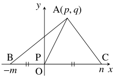 $\mathrm A(p,q),$ $\mathrm C(n,0)$ とおくと, $\mathrm B(-m,0)$ となるから,